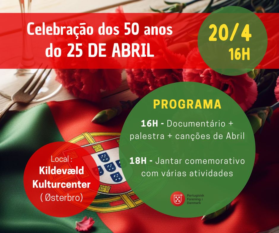 Junte-se a nós para celebrar 25 de abril 50 anos depois | Vær med til at fejre den 25. april 50 år senere